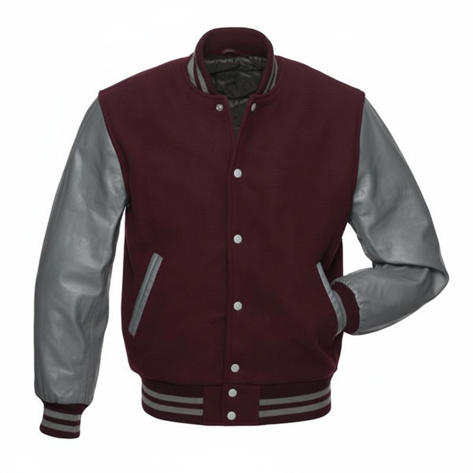 เสื้อแจ็กเก็ตเบสบอลผ้าสักหลาดสำหรับผู้ชายเสื้อแจ็กเก็ตเบสบอลมีตัวอักษรกำมะหยี่ปักลายสำหรับผู้ชาย