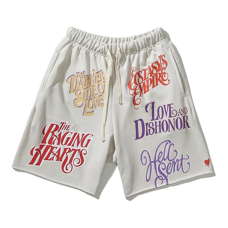 กางเกงขาสั้นผ้าฝ้ายผู้ชายแบบกําหนดเองกางเกงขาสั้นพิมพ์ลายวินเทจคุณภาพสูงกางเกงขาสั้นวินเทจล้างกรดขนาดใหญ่สําหรับผู้ชาย