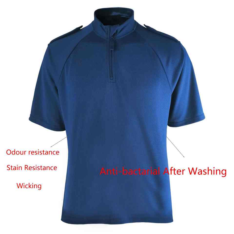 เสื้อทำงานผ้าฝ้ายของผู้ชายเสื้อยืดแขนสั้นแบบสั่งทำป้องกันแบคทีเรียซักได้