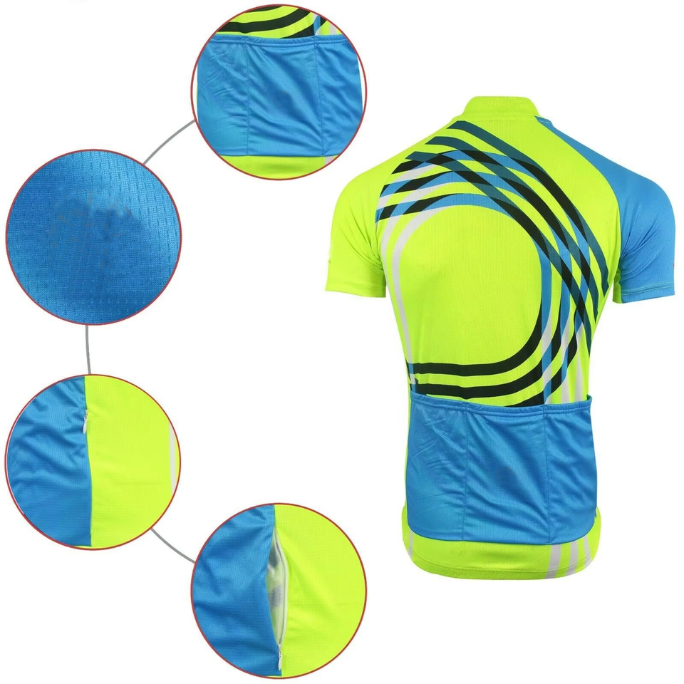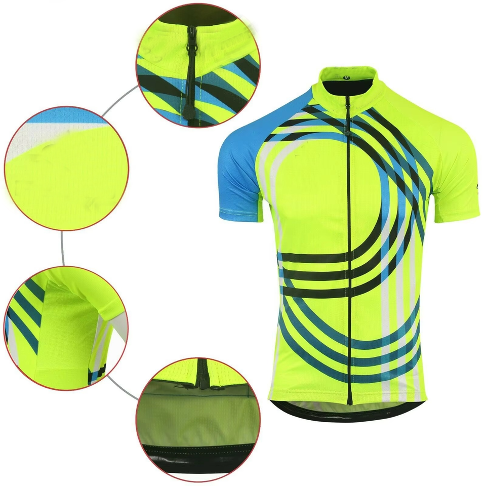 เสื้อขี่จักรยานของผู้ชายเสื้อแข่งจักรยานเสือภูเขาแบบมีซิปเสื้อแข่งสีเหลืองแขนสั้นสำหรับฤดูร้อน