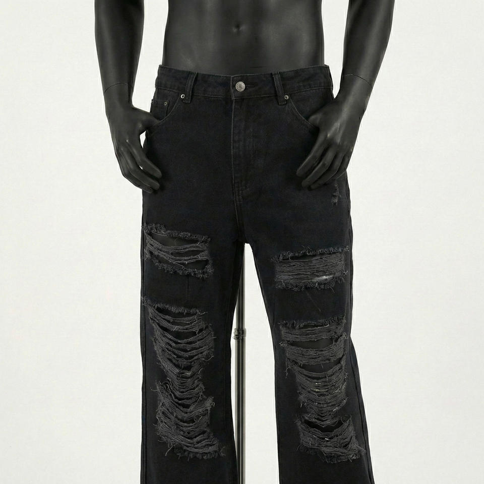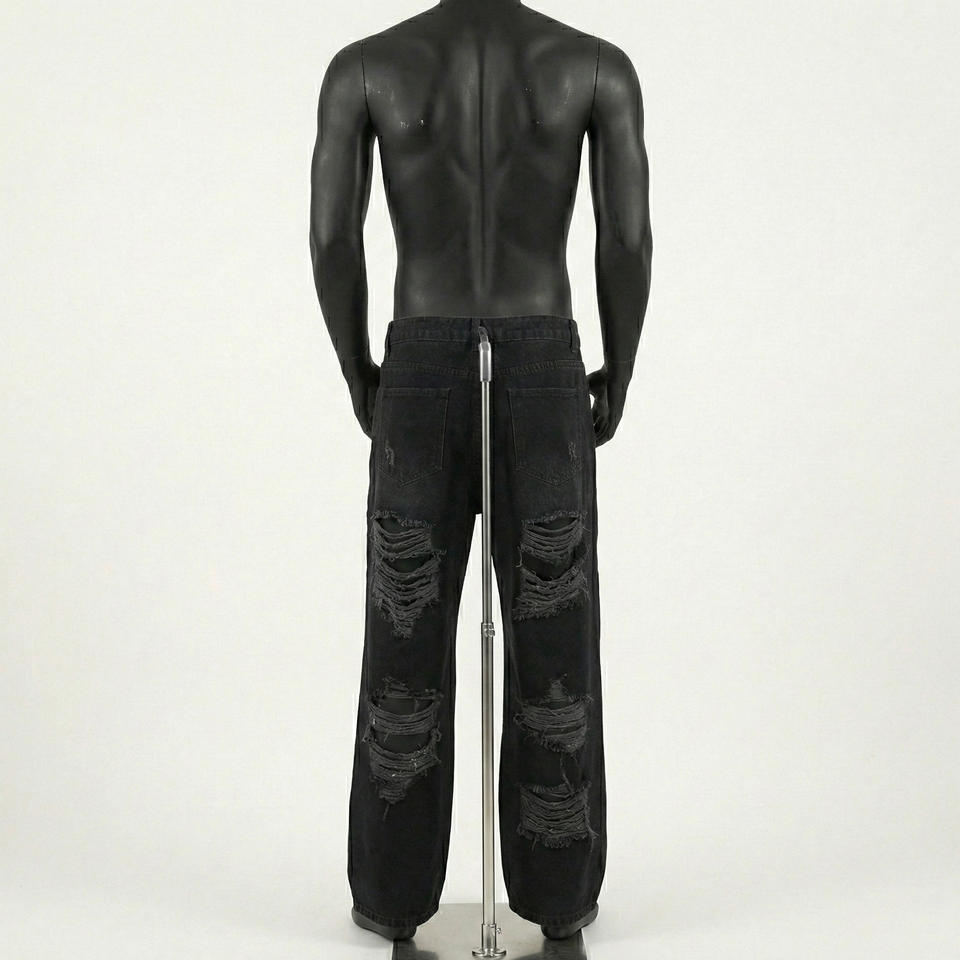กางเกงยีนส์เดนิมทรงตรงสำหรับผู้ชาย เอวสูง ทรงหลวม สไตล์โกธิค ลุคฮิปฮอป สตรีทแวร์ ผ้าฝ้าย 100% คุณภาพสูง รุ่น 2026
