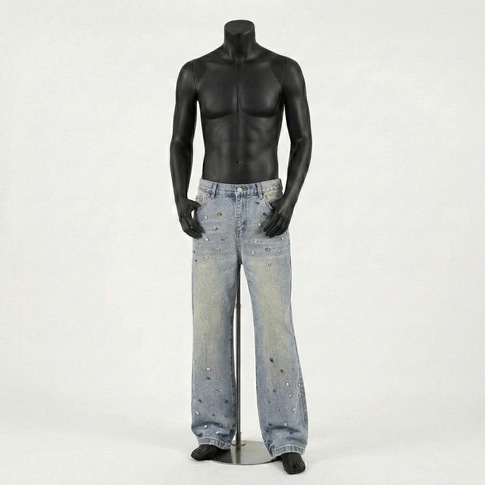 กางเกงยีนส์เดนิมทรงหลวมสำหรับผู้ชาย คุณภาพสูง สไตล์ฮิปฮอป สตรีทแวร์ รุ่นปี 2026