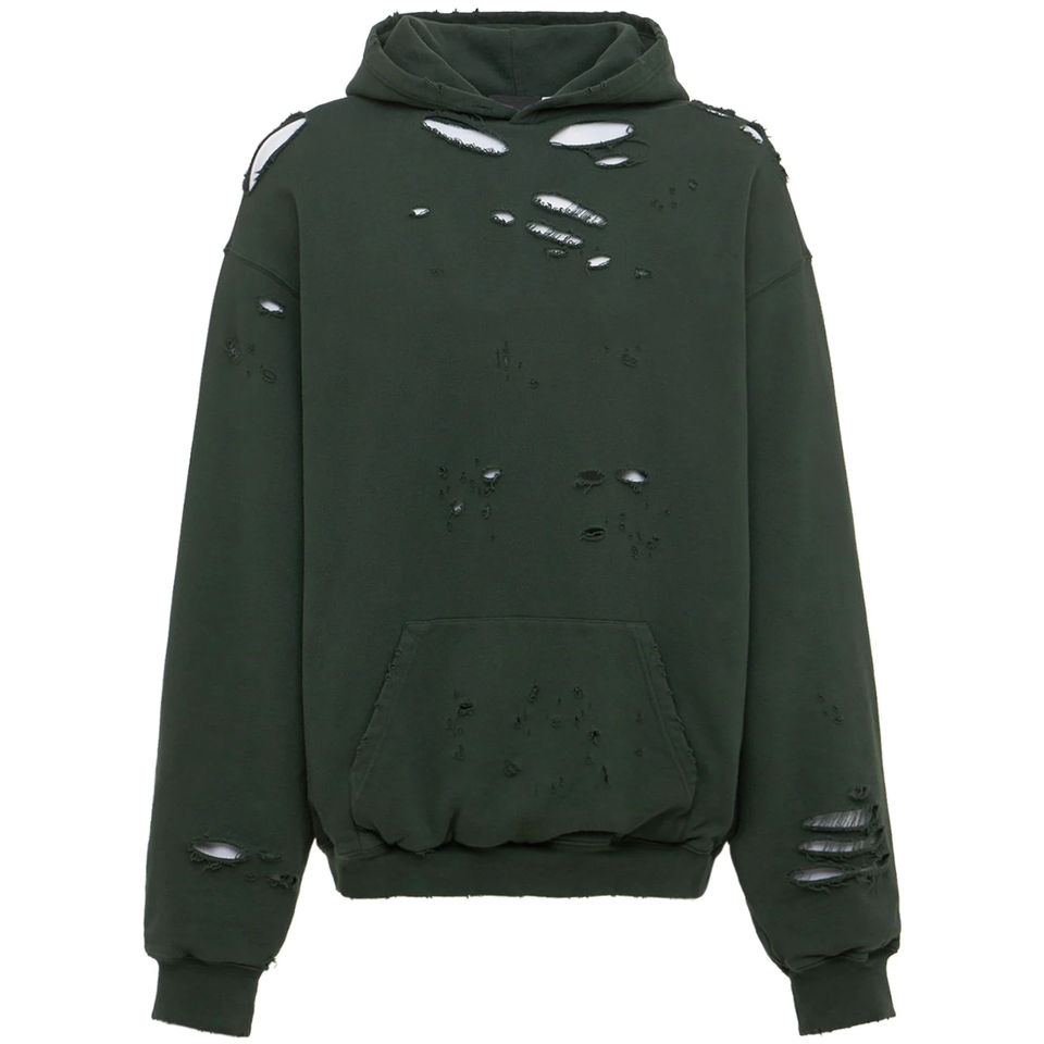 เสื้อฮู้ดดี้ผู้ชายแบบดิสเทรส แพทช์เวิร์ค ผ้าฝ้ายฟลีซ 100% ระบายอากาศได้ดี ทรงโอเวอร์ไซส์ สำหรับสตรีทแวร์ ชุดลำลองผู้ใหญ่