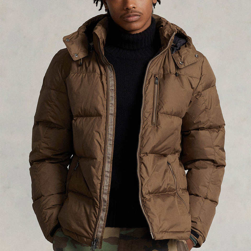 แจ็กเก็ตขนเป็ดของผู้ชายพร้อมฮู้ดเสื้อกันลมสำหรับฤดูหนาว