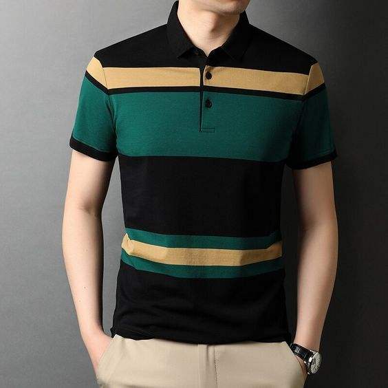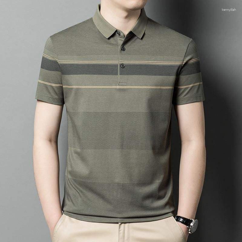 เสื้อโปโลแบบแห้งพอดีตัวสำหรับผู้ชายเสื้อโปโลปกลายทางระบายอากาศได้ดีวัสดุแบบพอดีตัวระบายอากาศได้ดี