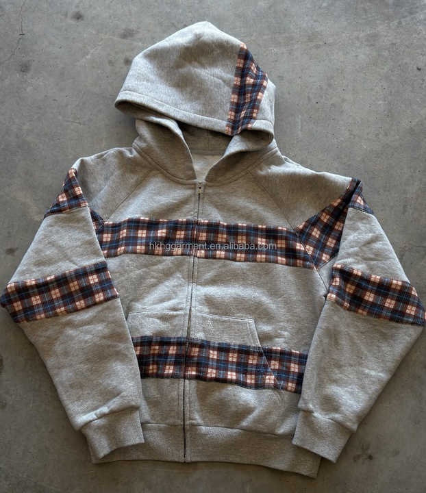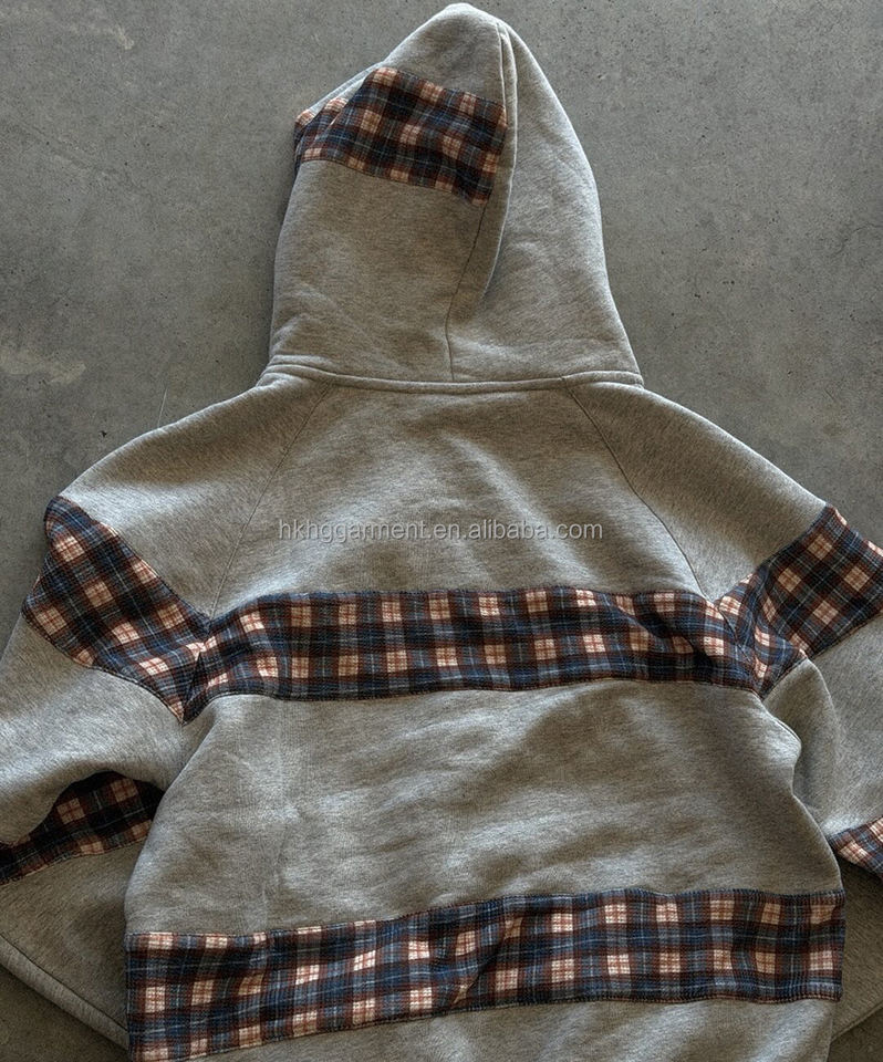 เสื้อฮู้ดดี้ผู้ชายปักลายแบบสั่งทำพิเศษ ผ้าเทอร์รี่คอตตอน 100% ทรงโอเวอร์ไซส์ แต่งผ้าแบบแพทช์เวิร์ค ซิปหน้า แขนยาว สำหรับใส่ลำลองสไตล์สตรีทแวร์
