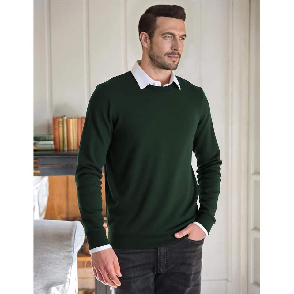 เสื้อสเวตเตอร์ผู้ชายแฟชั่น ผ้าผสมขนสัตว์ คอกลม คลาสสิก สไตล์ลำลอง สำหรับฤดูใบไม้ร่วงและฤดูหนาว ลายถักพิมพ์ ผลิตตามแบบที่กำหนดเองได้ (ODM)