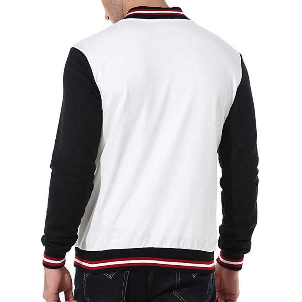 เสื้อแจ็คเก็ตวาร์ซิตี้แบบเป็นทางการสำหรับผู้ชาย พร้อมปกตั้ง ปักลายเชนิลล์ ดีไซน์แบบเลตเตอร์แมนบนผ้าแคนวาส