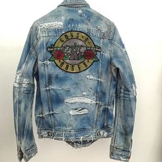 เสื้อแจ็คเก็ตยีนส์ผู้ชายสไตล์วินเทจพิมพ์ลายติดกระดุมแบบลำลองสำหรับฤดูหนาว กันลม กันน้ำ สไตล์พังก์