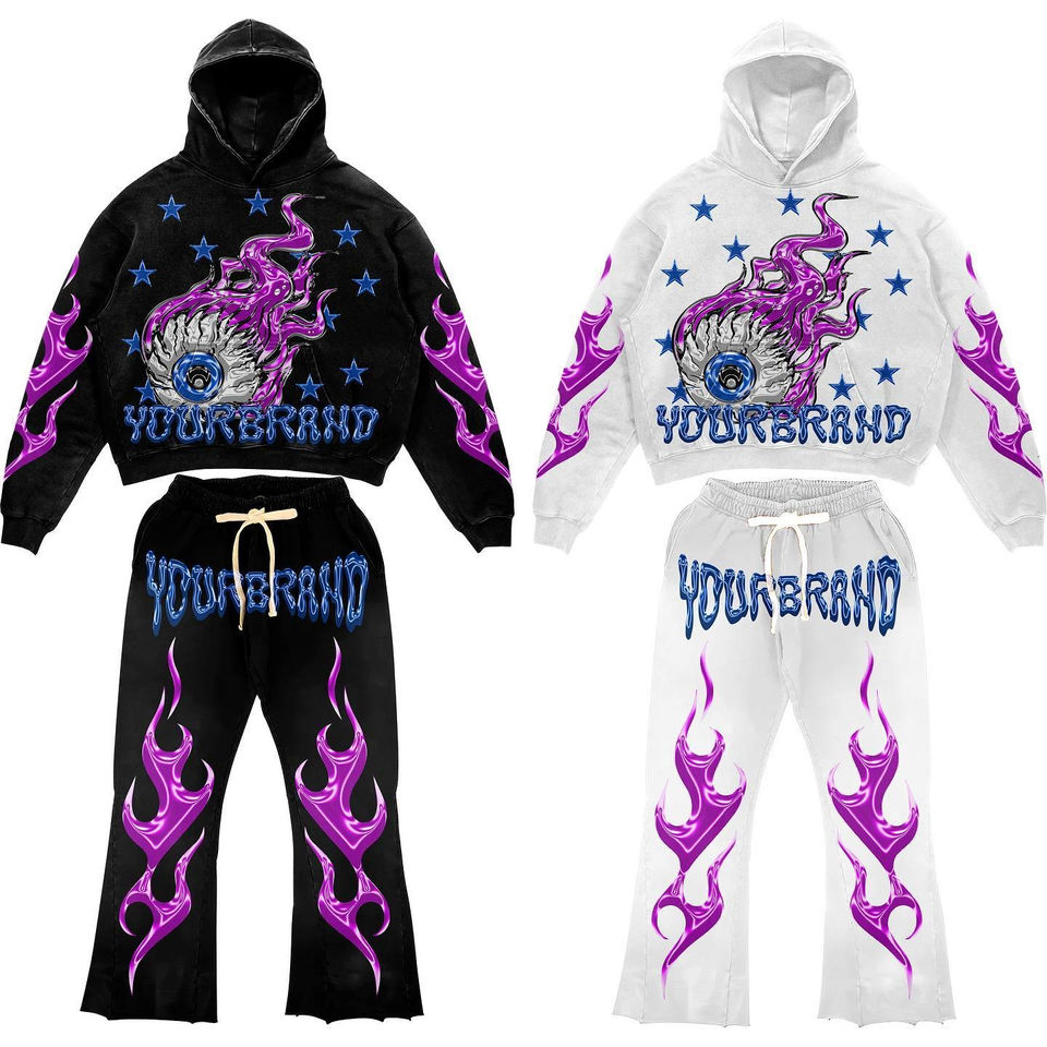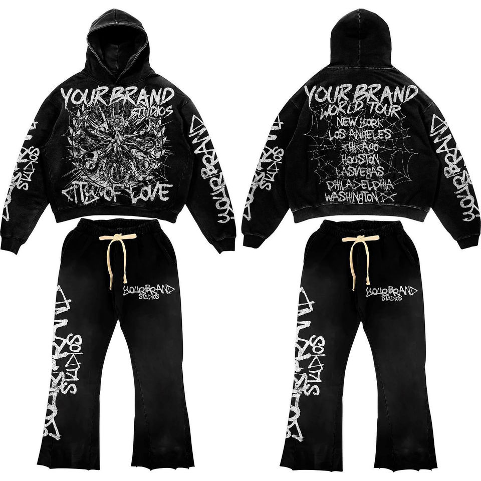 Custom Men's French Terry Sweatsuit 100% Heavyweight Cotton Acid Wash Vintage Dtg Custom Print High Quality Hoodie & Sweatpants