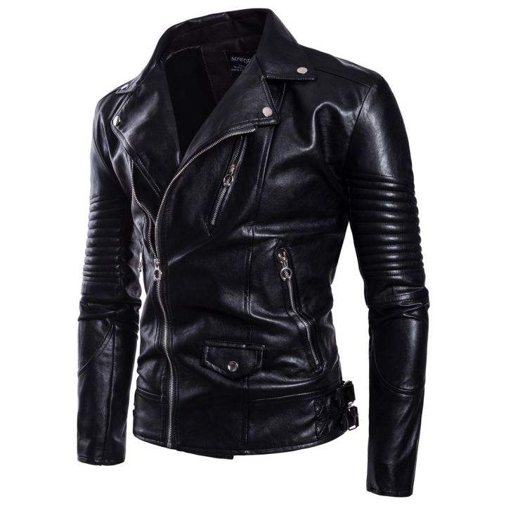 แจ็กเก็ตมอเตอร์ไซด์ของผู้ชายแจ็คเก็ตหนังแท้ปกตั้งสไตล์ไฮสตรีทผ้าใบออกแบบได้ตามต้องการ
