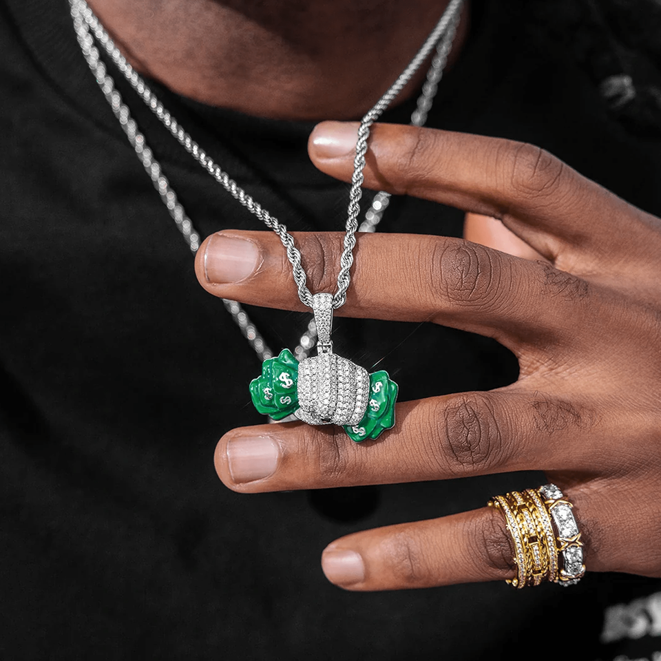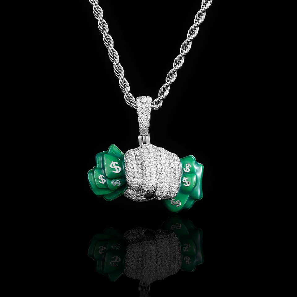 จี้เพชร CZ ชุบทองคำขาวสำหรับผู้ชาย สไตล์ฮิปฮอป