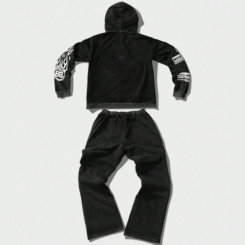 Custom Men’s Graphic Letter Print Sweatshirt & Pants Tracksuit – Casual Oversized Long Sleeve Set Perfect For Streetwear Fashion