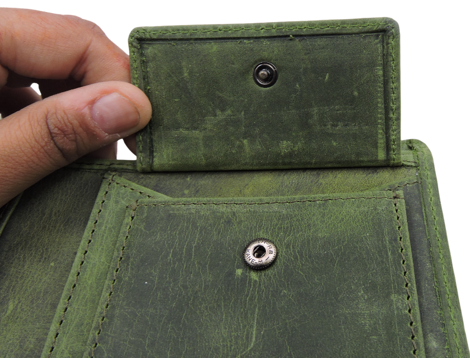 ที่ใส่บัตรหนังสีเขียวสำหรับผู้ชายแบบสั่งทำ & กระเป๋าสตางค์บางพิเศษ พร้อมระบบป้องกัน RFID กระเป๋าใส่เหรียญมีซิป ใส่เงิน บัตรเครดิต และบัตรเดบิตได้ ดีไซน์วินเทจสำหรับธุรกิจ