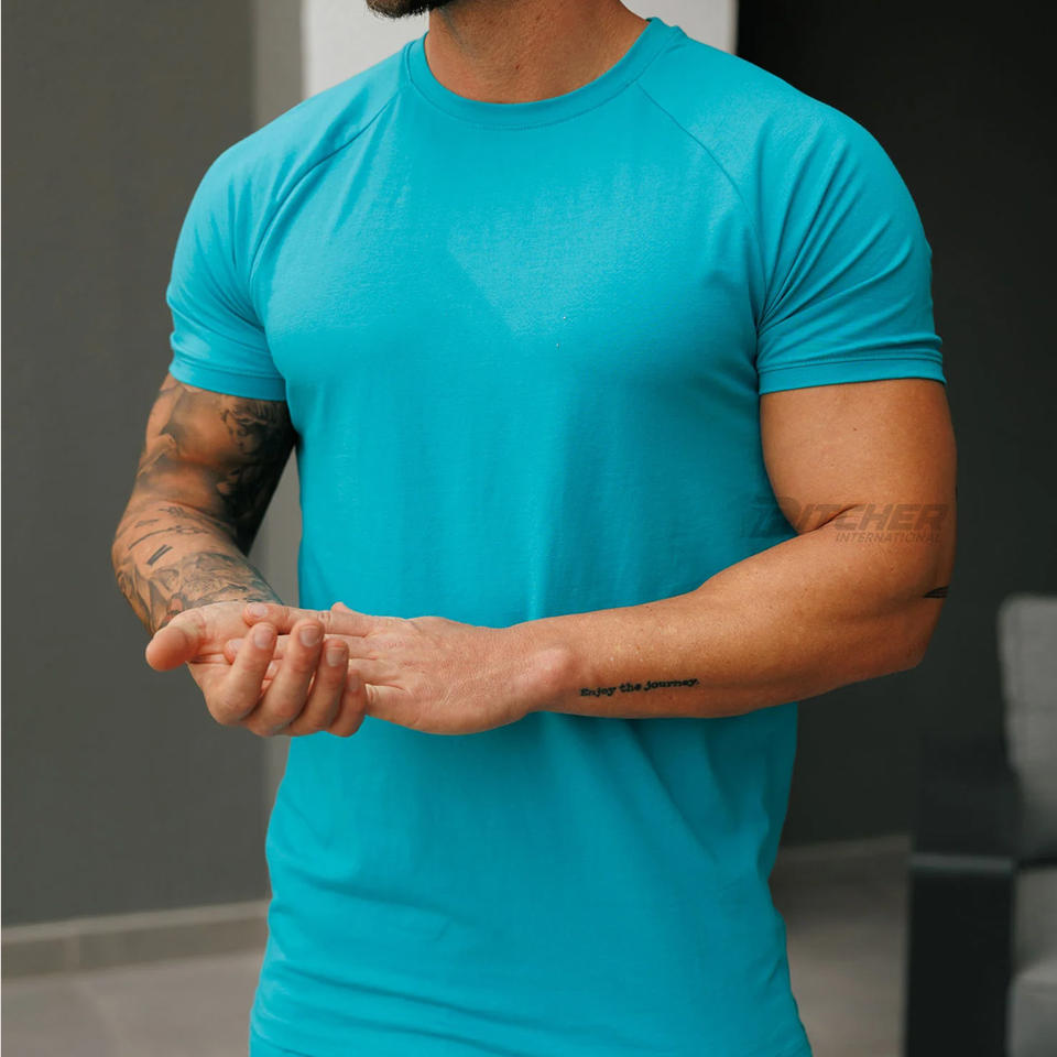 เสื้อยืดออกกำลังกายสำหรับผู้ชายผ้าฝ้ายถักโพลีเอสเตอร์/ ผ้าฝ้ายผสมโพลีเอสเตอร์/ คอตตอนระบายอากาศได้ป้องกันการเกิดขนแบบเป็นมิตรกับสิ่งแวดล้อม