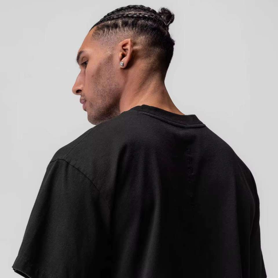 เสื้อยืดโอเวอร์ไซส์ทรงหลวม คอโอ แขนสั้น พิมพ์ลาย สตรีทแวร์ ผ้าคอตตอน 100% หนานุ่ม ระบายอากาศได้ดี ซักย้อมสีแบบแอซิดวอช สำหรับผู้ชาย