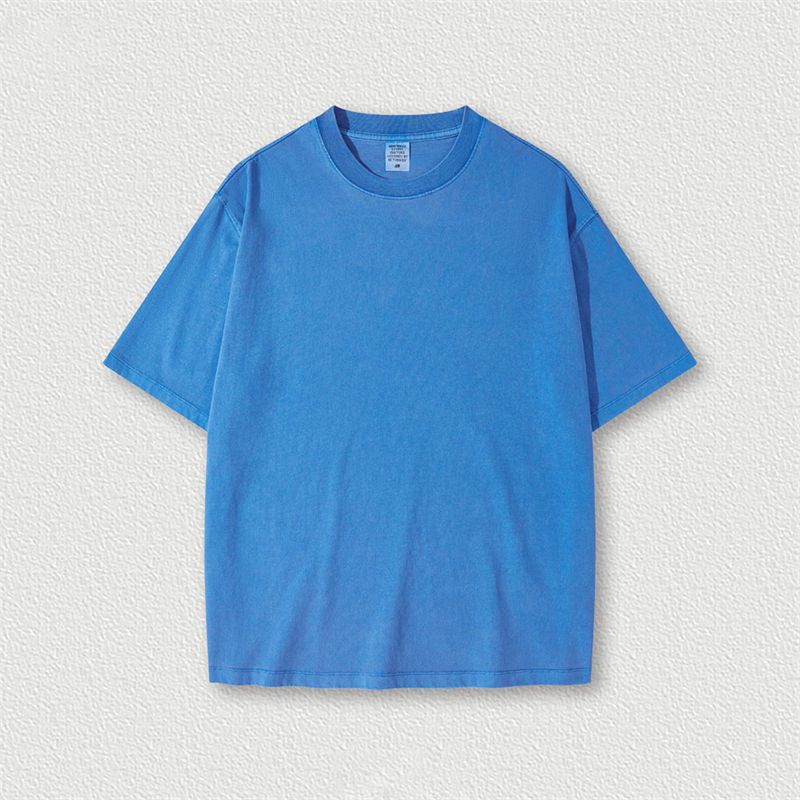 เสื้อผ้าแนวสตรีทผ้าฝ้าย100% สำหรับผู้ชายเสื้อทรงหลวมโอเวอร์ไซส์ผ้าบ็อกซี่แขนสั้นผ้าฝ้ายฟอกสี285gsm
