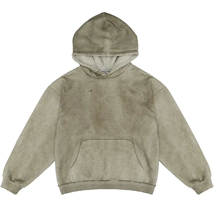 เสื้อฮู้ดดี้ผ้าฝ้ายหนาน้ำหนักมากสำหรับผู้ชาย สไตล์วินเทจฟอกสีแบบแอซิดวอช พร้อมเอฟเฟกต์ซันเฟด ไซส์พลัส สำหรับใส่ในฤดูหนาว