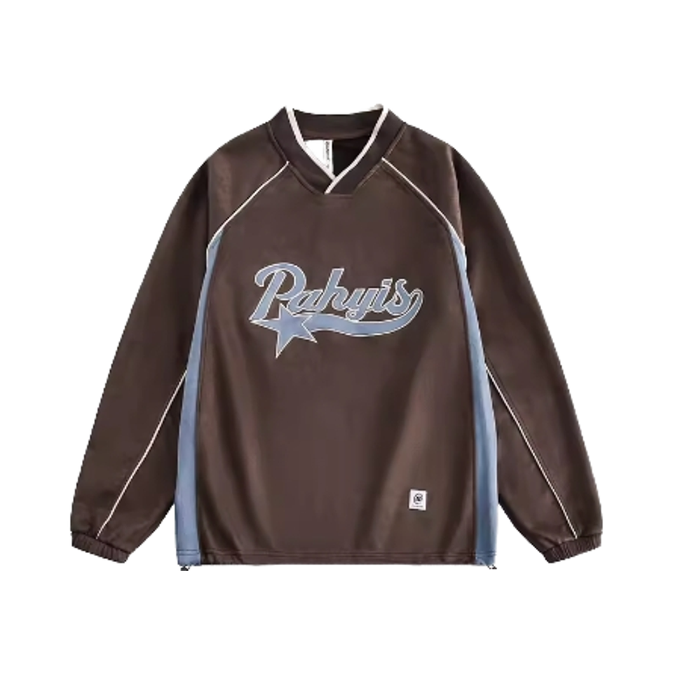 เสื้อสเวตเตอร์คอวีของผู้ชายโอเวอร์ไซส์ผ้าคอตตอนพิมพ์ลายฮิปฮอปแขนยาวผ้าคอตตอนไซส์ใหญ่พิเศษฤดูใบไม้ร่วง