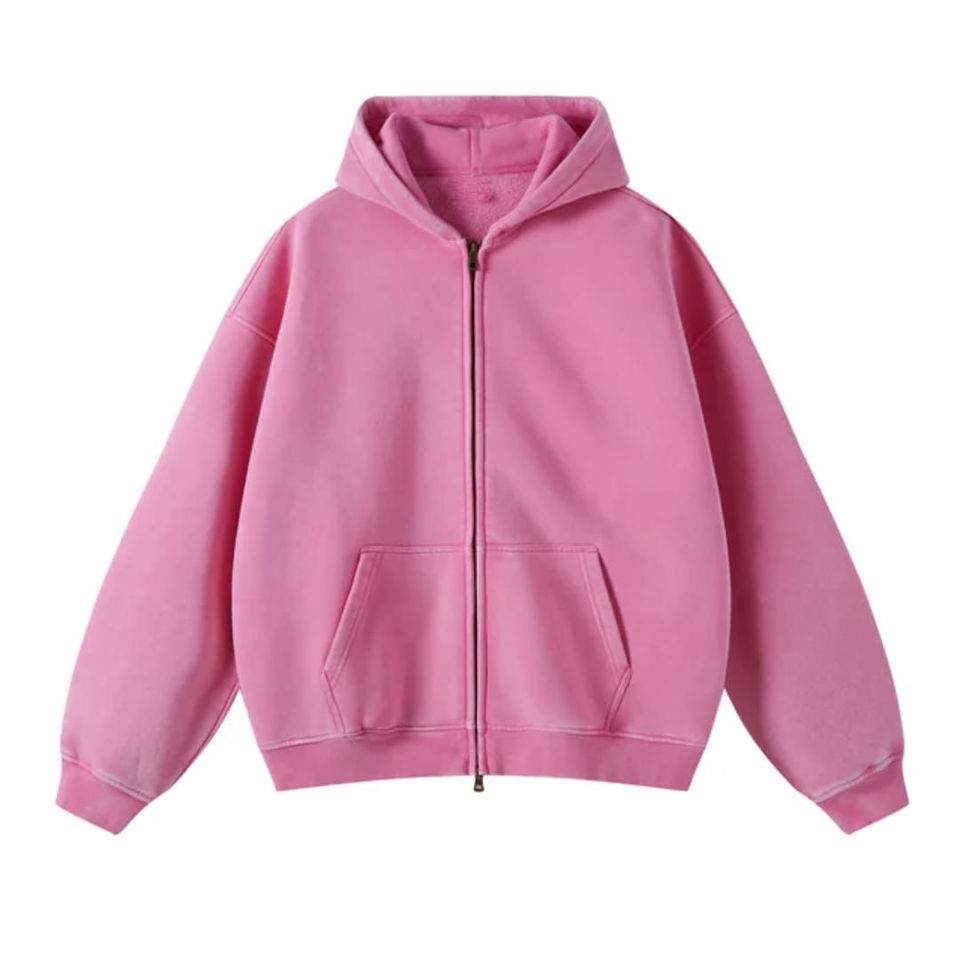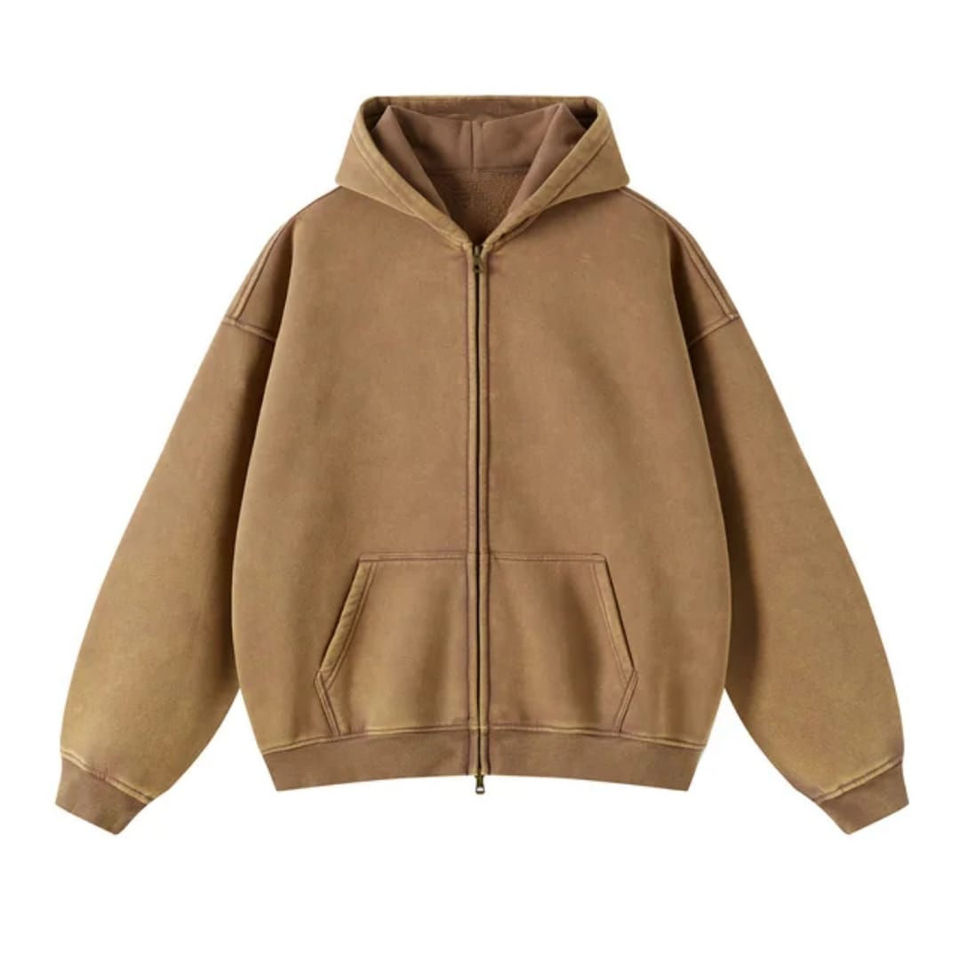 เสื้อฮู้ดดี้ผู้ชายแบบสวมหัว ซิปหน้า ผ้าฝ้ายเฟรนช์เทอร์รี่ 100% ทรงโอเวอร์ไซส์ ไหล่ตก สไตล์ลำลอง สำหรับผู้ชาย