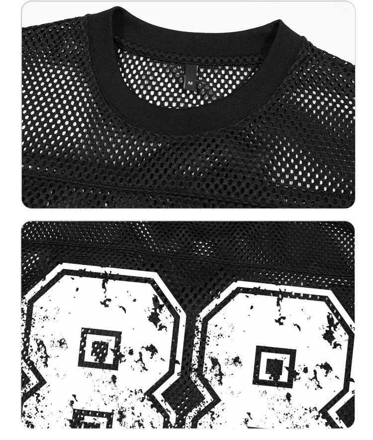 เสื้อฟุตบอลสไตล์อเมริกันวินเทจสำหรับผู้ชายเสื้อครอปขนาดใหญ่เสื้อตาข่ายคอวีฤดูร้อนสำหรับทุกขนาด