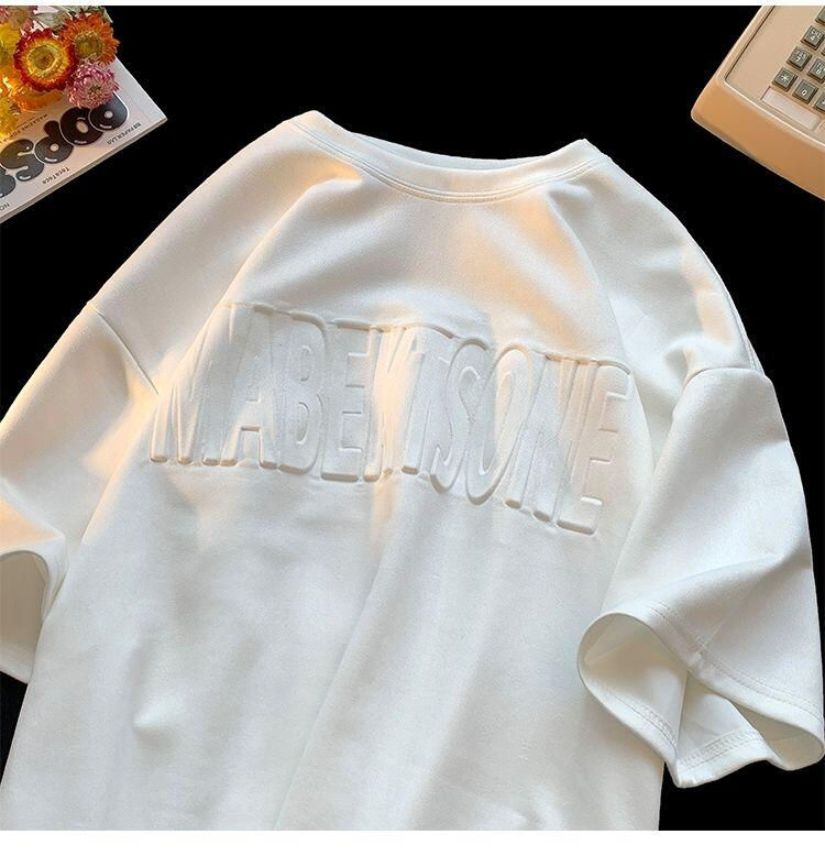 เสื้อยืดผ้าฝ้ายออร์แกนิคสำหรับผู้ชายเสื้อยืดพิมพ์ลายนูนไหล่ดีไซน์เปิดไหล่ลาย3D