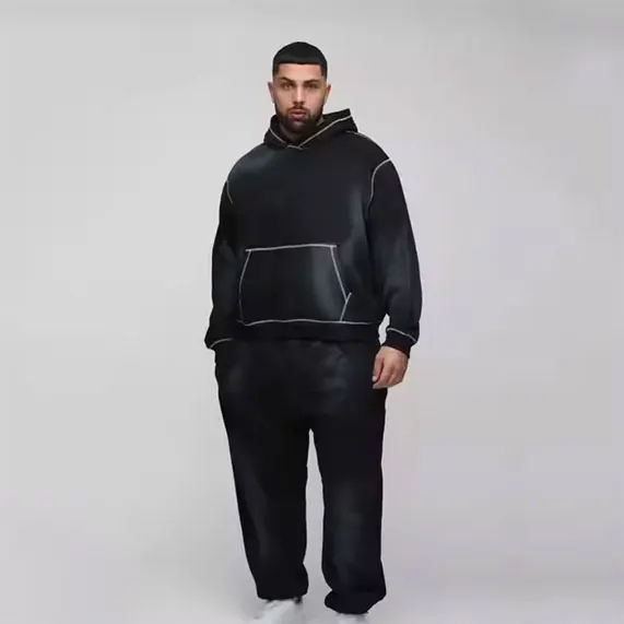 ชุดฮู้ดดี้ลำลองผู้ชายคุณภาพสูง ผ้าฝ้ายแท้ 100% สกรีนโลโก้ตามสั่ง ทรงโอเวอร์ไซส์ ไหล่ตก สำหรับใส่ในฤดูหนาว