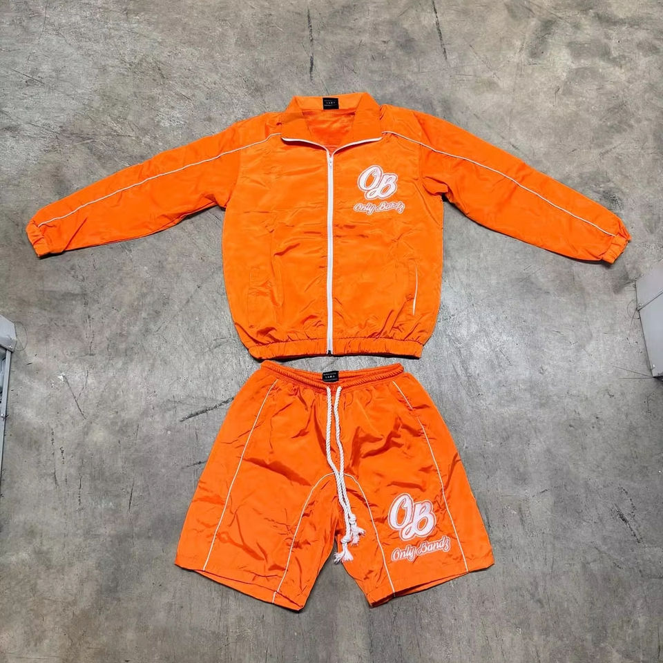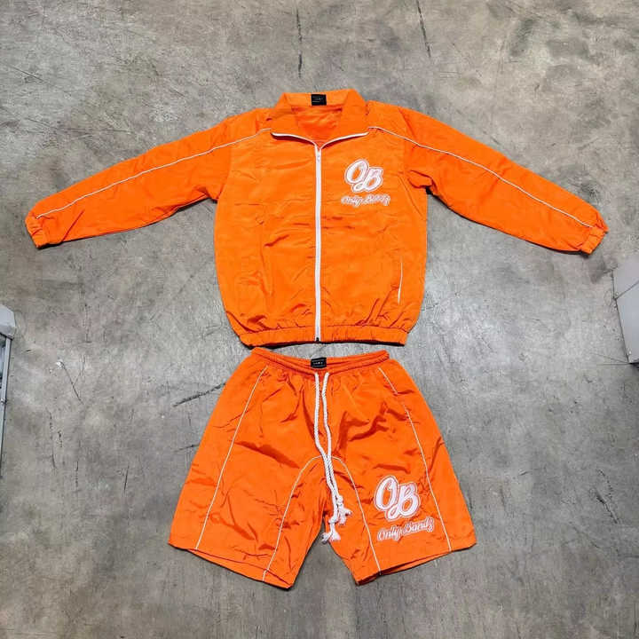 ชุดวอร์มผ้าไนลอนกันลมของผู้ชายชุดวอร์มพิมพ์ลายตัวอักษรใส่สบายระบายอากาศได้สั้นขนาดใหญ่พิเศษสำหรับฤดูร้อน