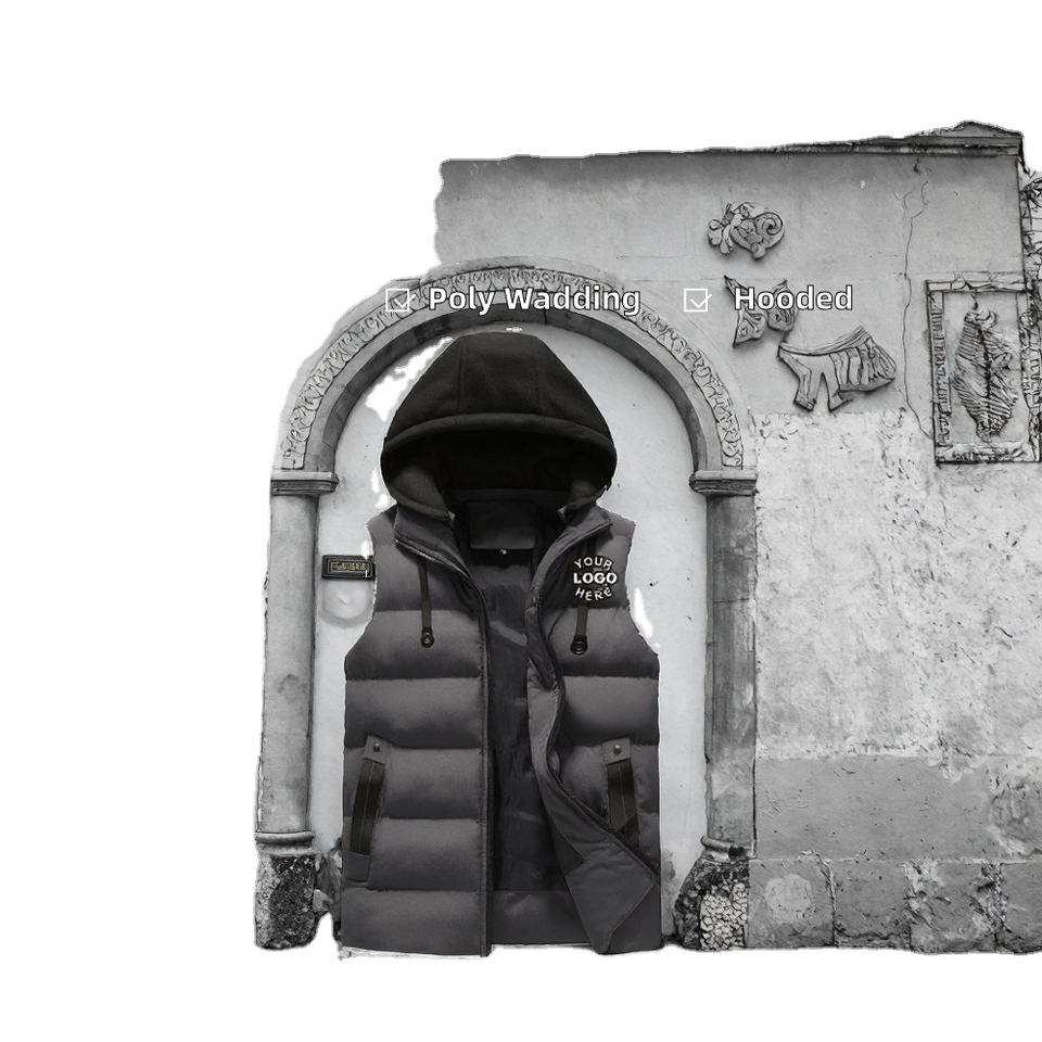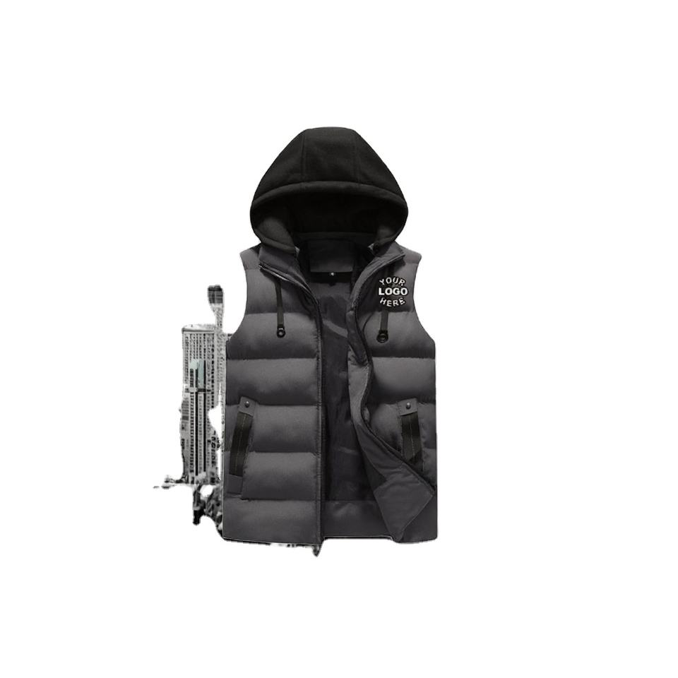 เสื้อแขนกุดแบบมีฮู้ดสำหรับผู้ชายเสื้อนอกมีฟองสำหรับฤดูหนาวคุณภาพสูงออกแบบได้ตามต้องการผ้าทอแบบลำลองมีซิป