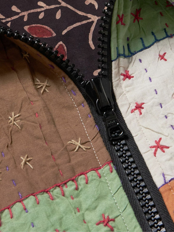 เสื้อแจ็คเก็ตพัฟเฟอร์แบบบางสำหรับฤดูหนาว แบบยูนิเซ็กซ์ คุณภาพสูง ตกแต่งด้วยซิป ลายปะติดแบบดิสเทรส ล้างสีแบบแอซิดวอช ปักลายปะติด ตัดต่อผ้าแบบต่างๆ