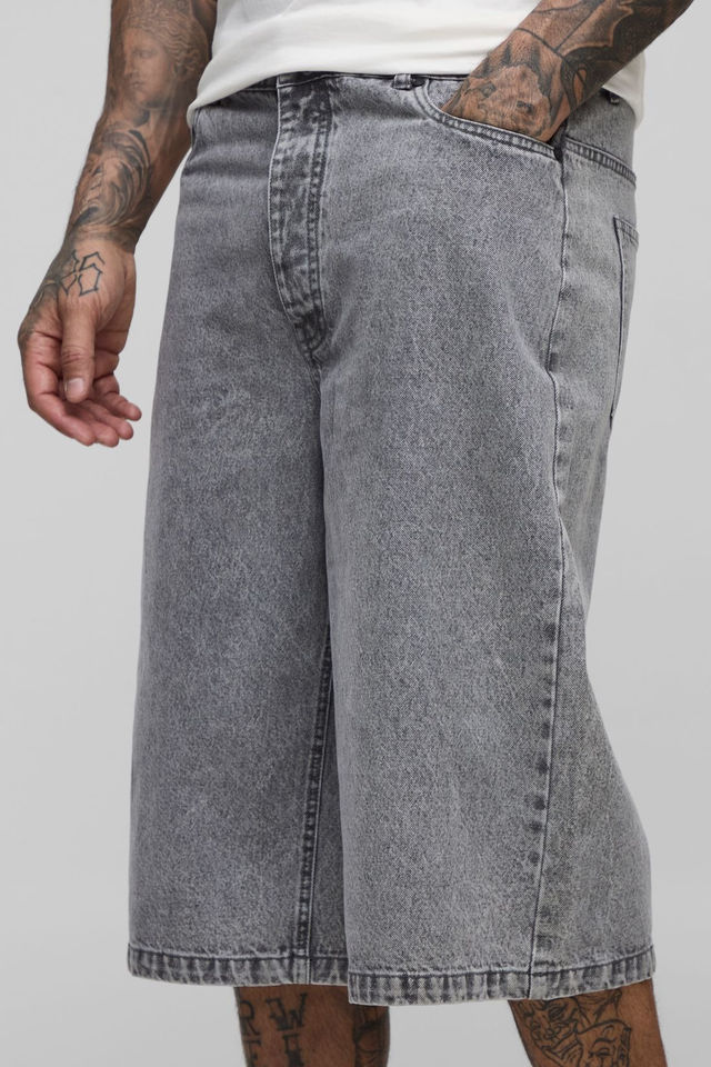 กางเกงยีนส์ขาสั้นทรงฮิปฮอปสำหรับผู้ชาย สไตล์สตรีทแฟชั่น ผ้าฝ้าย 100% ซักย้อมแบบแอซิด ระบายอากาศได้ดี กันน้ำ ทรงหลวม ยาว
