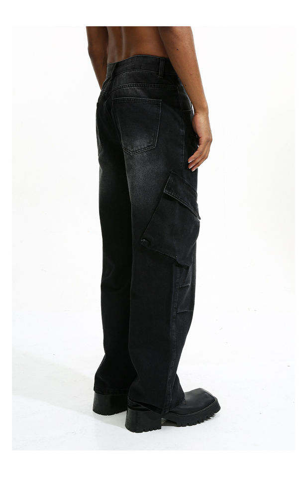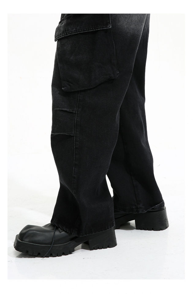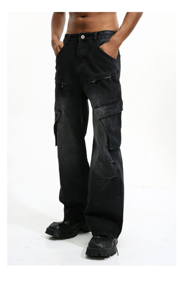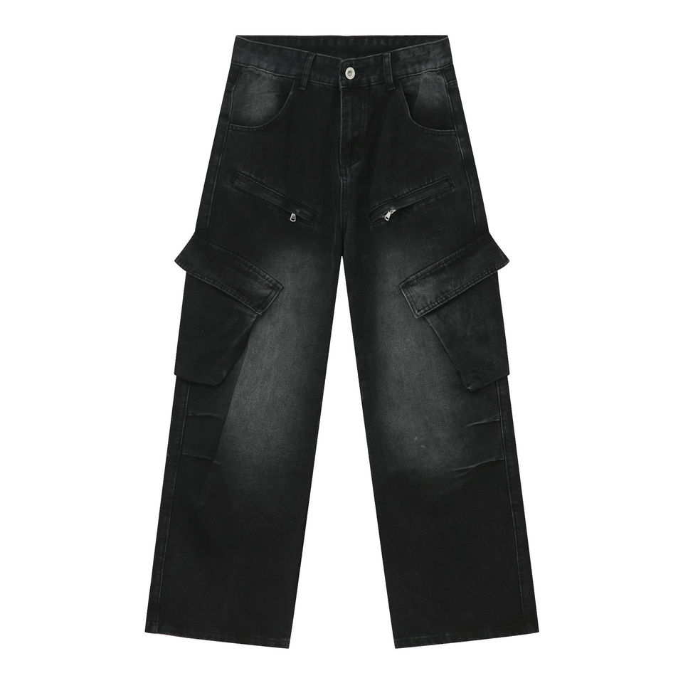กางเกงยีนส์คาร์โก้ผู้ชายสไตล์ไฮสตรีทปรับแต่งได้กระเป๋าข้างซักได้ระบายอากาศได้ดีสำหรับฤดูใบไม้ผลิฤดูร้อนฤดูใบไม้ร่วงฤดูหนาว