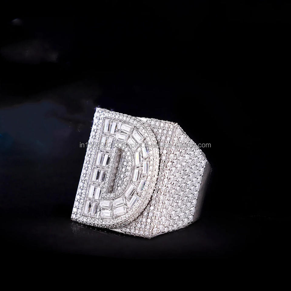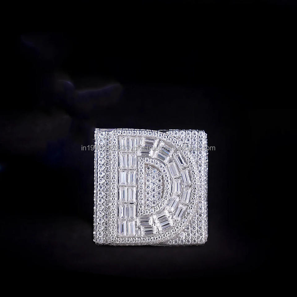 Custom Men's Hip Hop Statement Ring Baguette Cut Moissanite Rhodium Plated 925 Sterling Silver Personalized Initial Design Ring