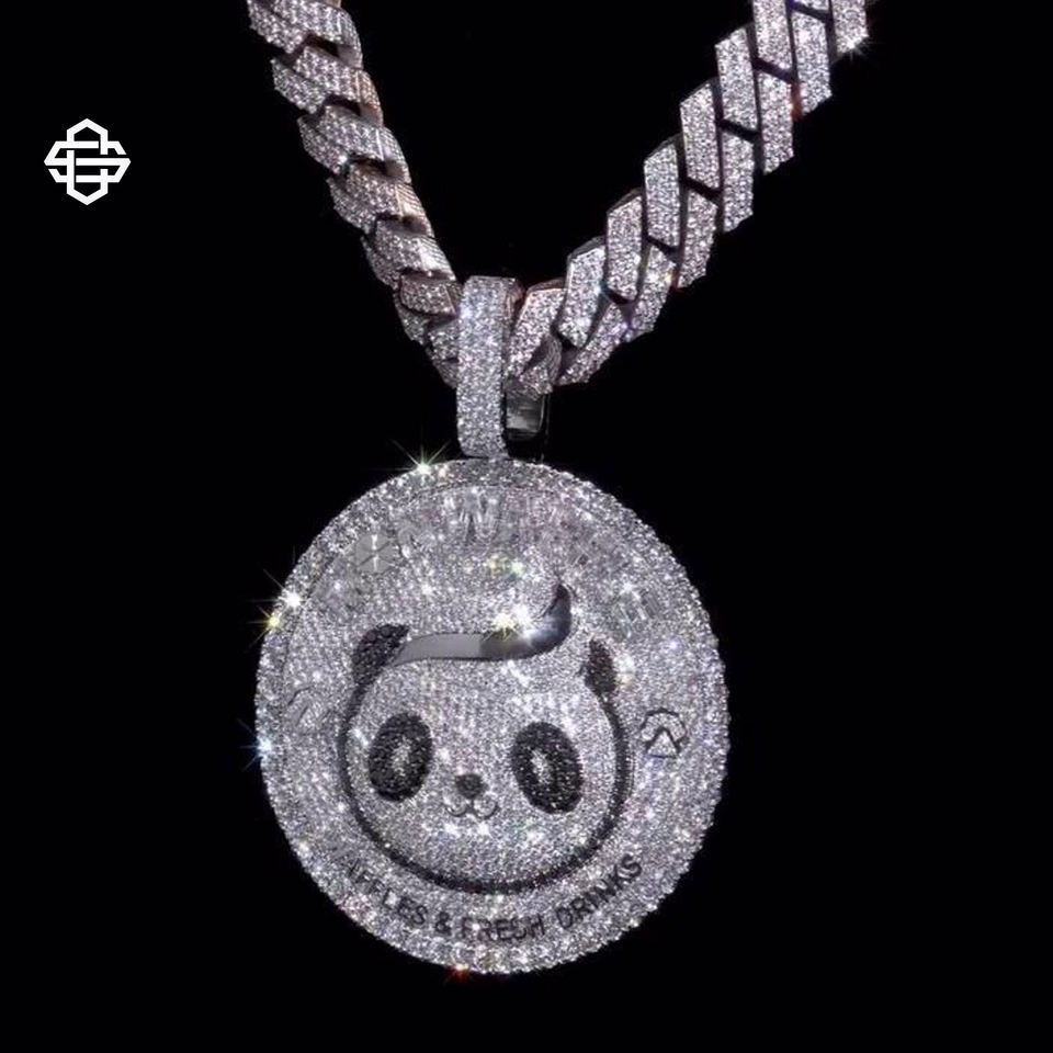 สร้อยคอแร็ปเปอร์ฮิปฮอปของผู้ชายที่กำหนดเองได้จี้รูปการ์ตูนแพนด้าชุบทองจี้แฟชั่นได้รับการรับรองจากร้าน IGI