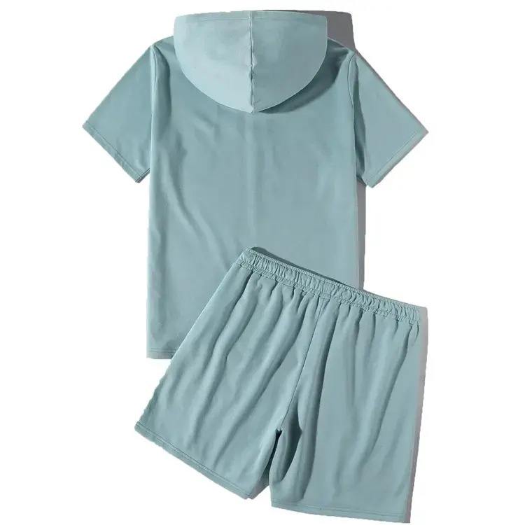 เสื้อยืดวินเทจมีฮู้ดสำหรับผู้ชายชุดวิ่งจ๊อกกิ้งกางเกงขาสั้นเอวเชือกรูดแบบธรรมดา