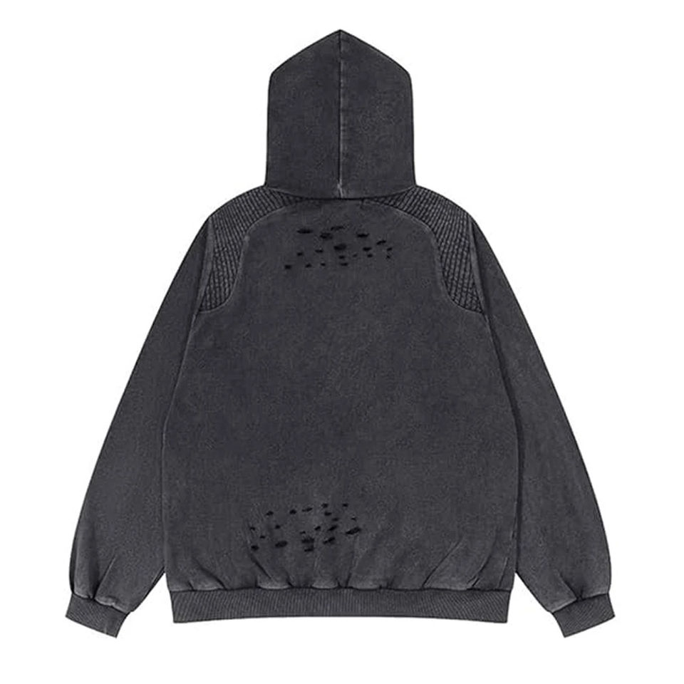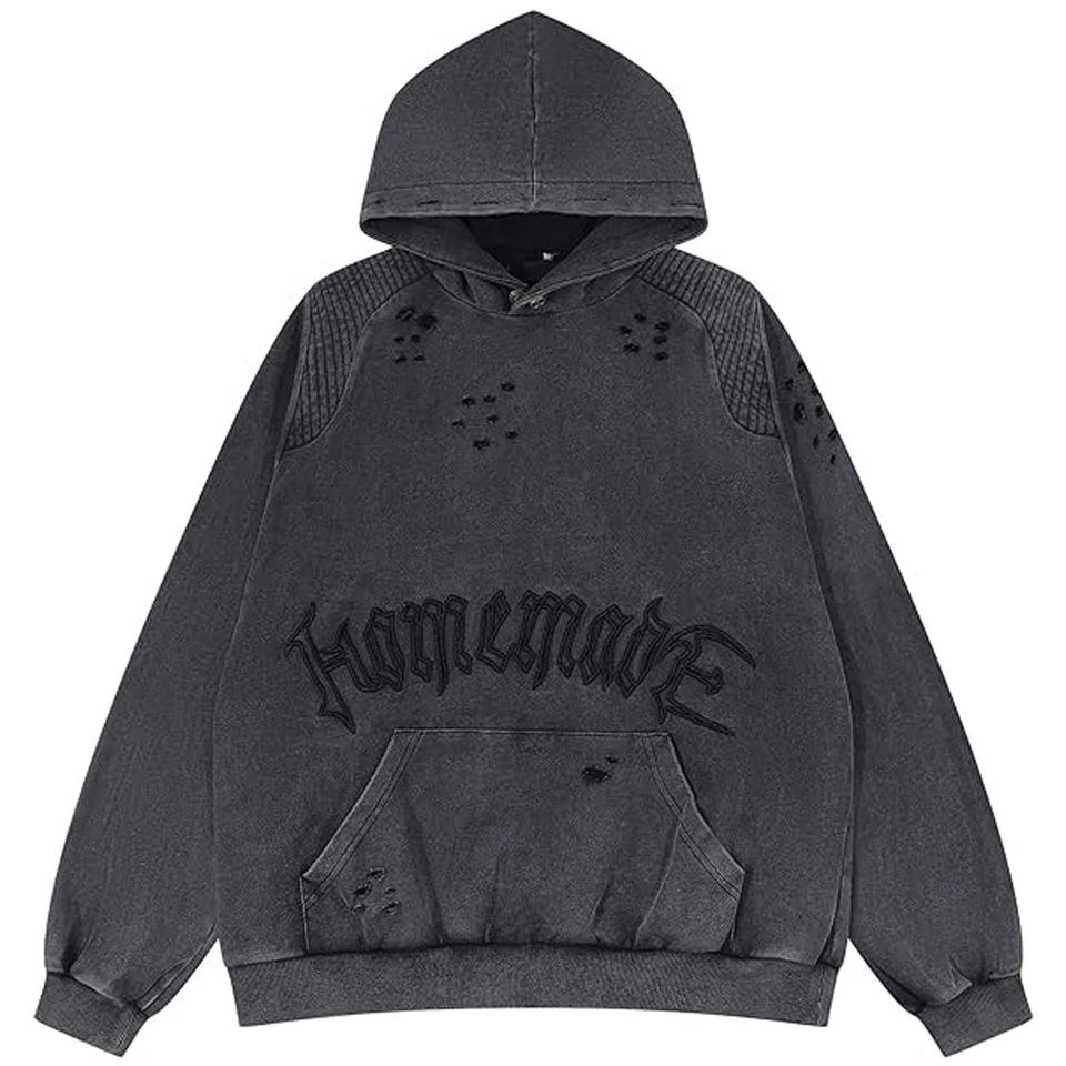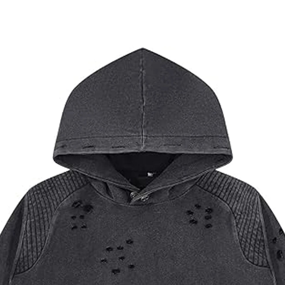 เสื้อฮู้ดดี้ผู้ชายแบบสั่งทำ ปักลายแบบดิสเทรส คุณภาพสูง ล้างสีแบบแอซิดวอช ทรงครอป น้ำหนักมาก สไตล์ Y2k