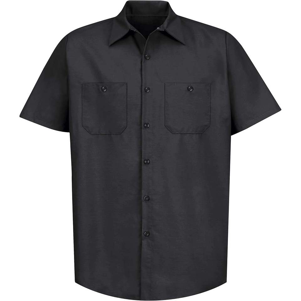 เสื้อเชิ้ตทำงานผู้ชายทรงปกติ แขนสั้น สีดำ ไซส์ XX-Large US