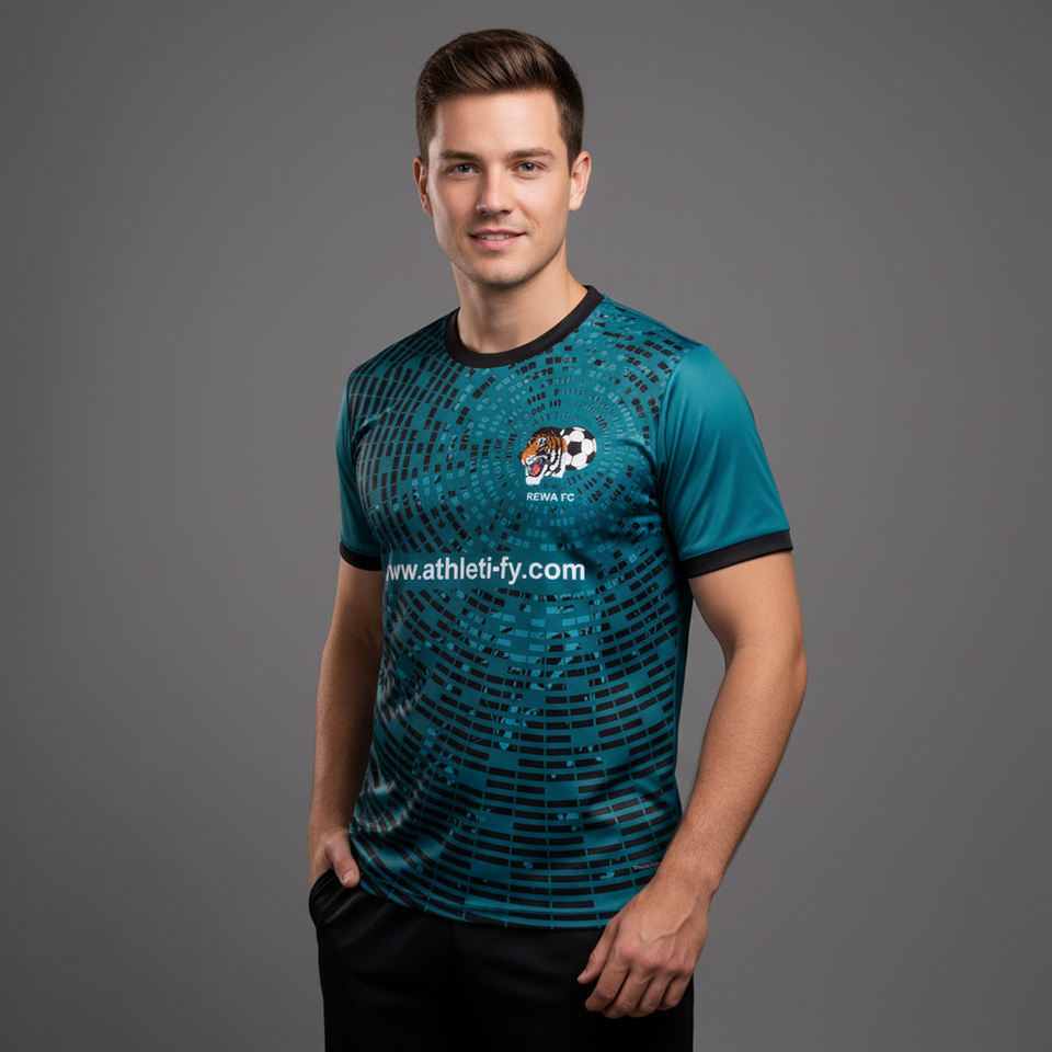 โรงงานผลิตเสื้อยืดถักผู้ชายแบบแห้งเร็ว ผลิตตามสั่ง 100% โพลีเอสเตอร์ พิมพ์ลายแบบซับลิเมชั่นทั่วตัว ดีไซน์แฟชั่นลำลอง