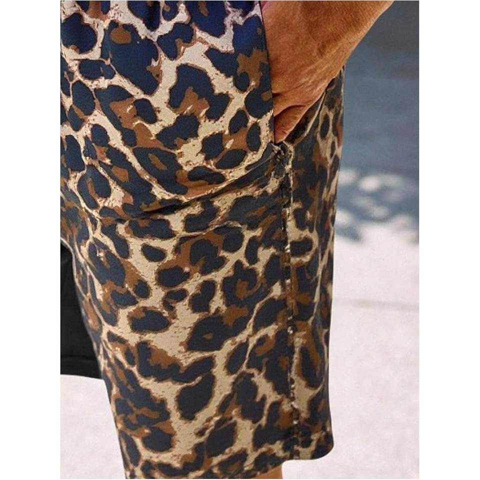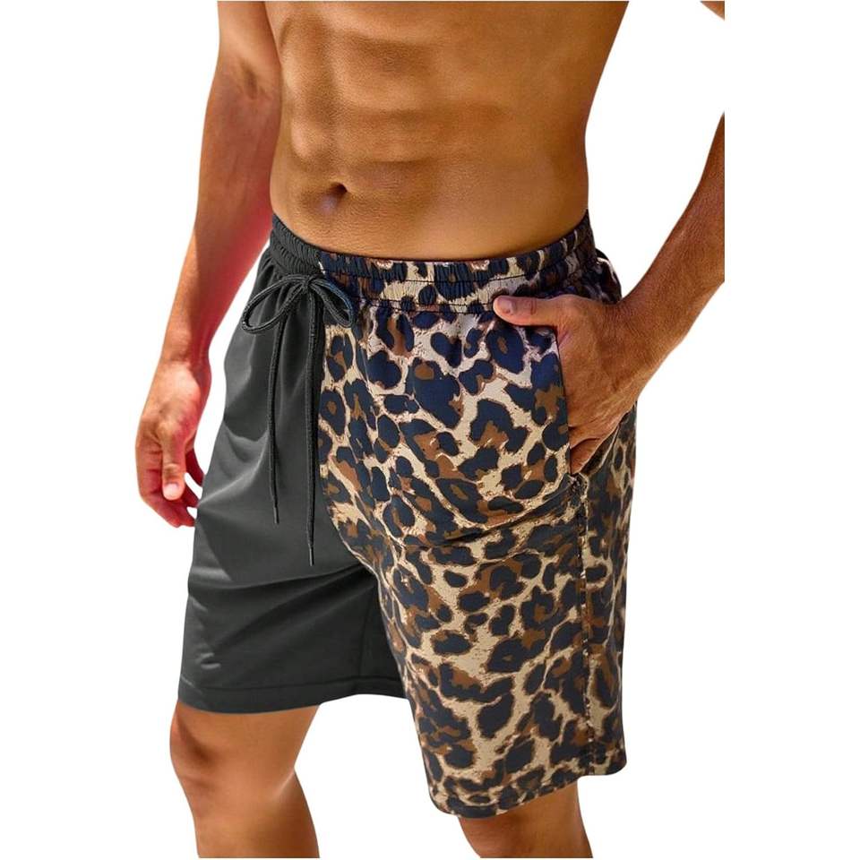 กางเกงว่ายน้ำลายเสือดาวสำหรับผู้ชาย แห้งเร็ว มีกระเป๋า ผ้าสแปนเด็กซ์ โพลีเอสเตอร์ ทออย่างดี