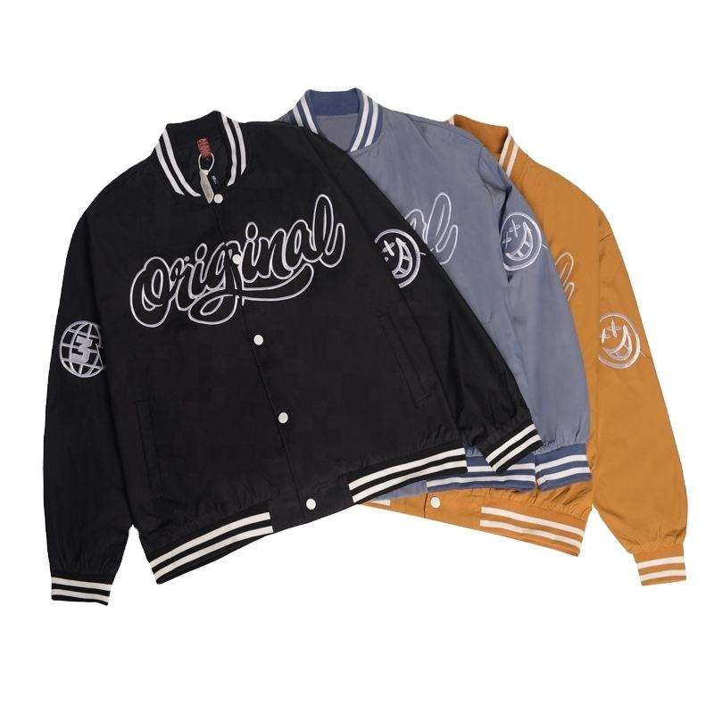 เสื้อแจ็กเก็ตบอมเบอร์ปักลายตัวหนังสือของผู้ชายเสื้อแจ็กเก็ตบอมเบอร์กันน้ำระบายอากาศได้ดีสำหรับฤดูหนาว