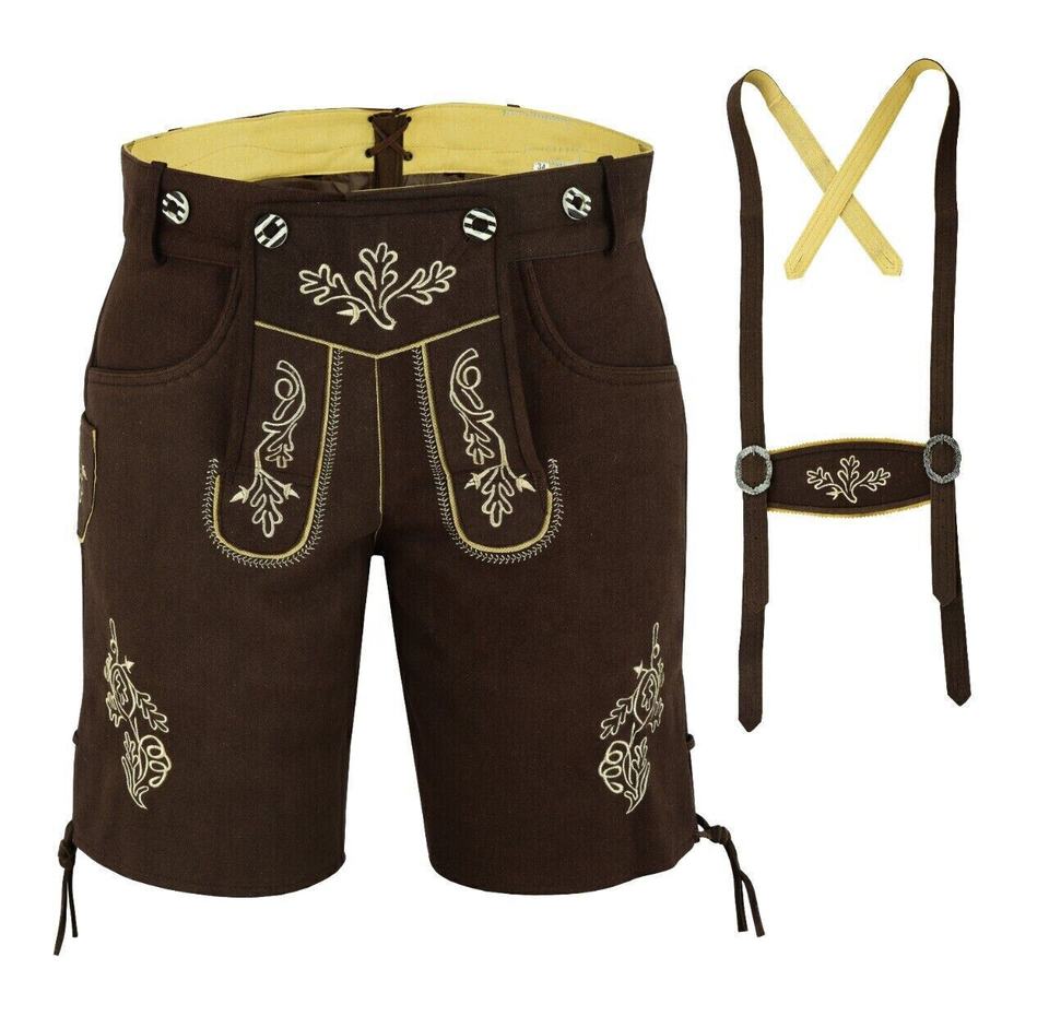 กางเกงขาสั้นบาวาเรียนเลเดอร์โฮเซนสำหรับผู้ชายแบบสั่งทำเข็มขัดหนังวัวนิ่มแบบเย็บปักแบบแบนมีกระดุมน้ำหนักเบาสำหรับสวมใส่ในเยอรมัน