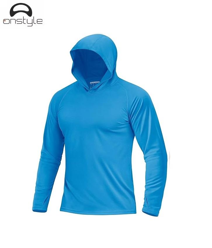 เสื้อฮู้ดตกปลาแขนยาวสำหรับผู้ชายเสื้อเปล่าผ้าโพลีเอสเตอร์ทอลายพื้น220กรัมกำหนดได้เอง