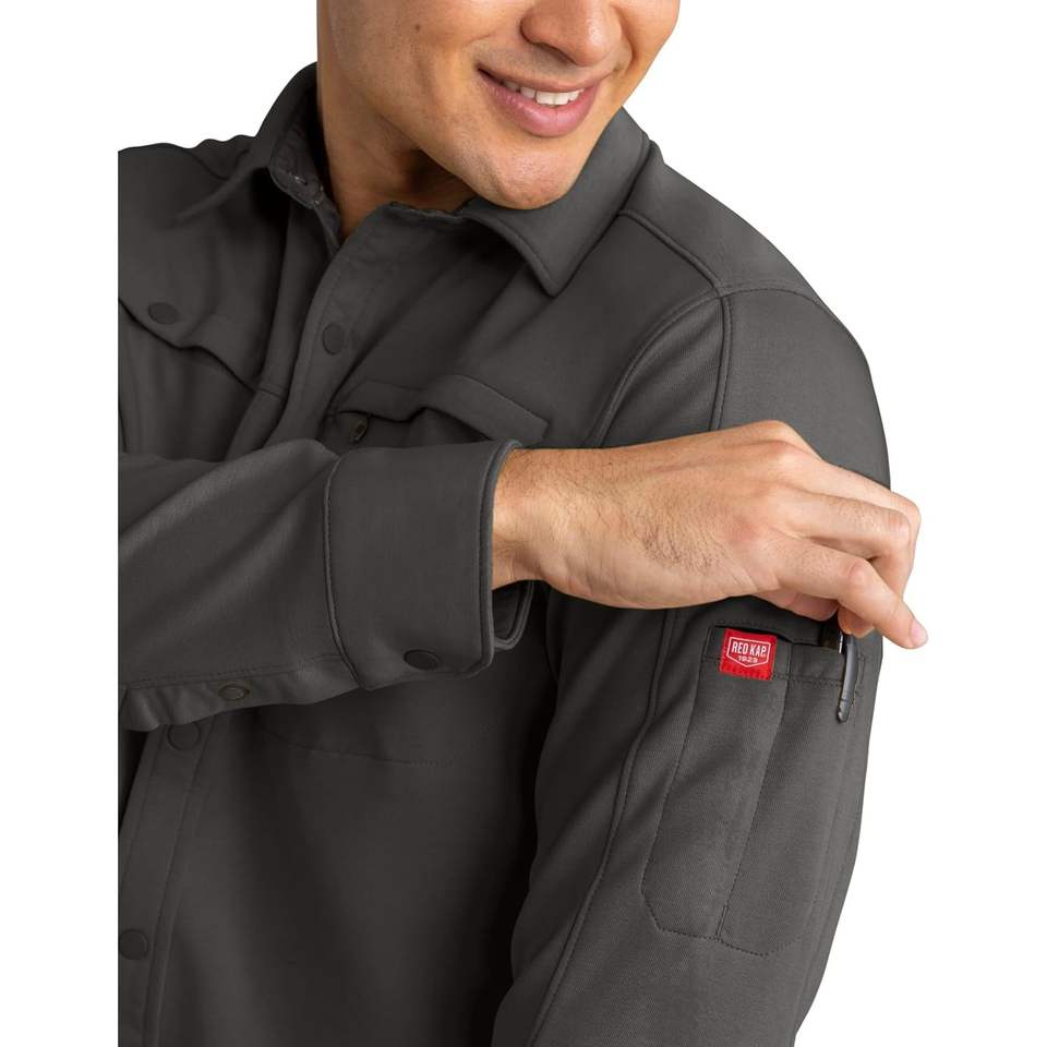 เสื้อทำงานแขนยาวของผู้ชายเสื้อสแนปด้านหน้า