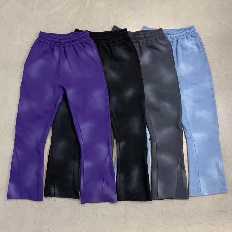 Custom Men's Luxury Rhinestones Vintage Trousers Wide Leg Rhinestone Heavyweight Distressed Sun Faded Acid Washed Flared Pants