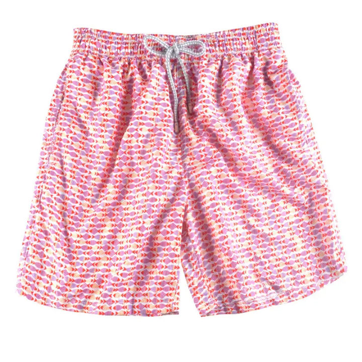กางเกงขาสั้นตาข่ายของผู้ชายกางเกงว่ายน้ำระบายอากาศได้ดีสีสดใสความยาวกลางต้นขาการระเหิดของผู้ชาย