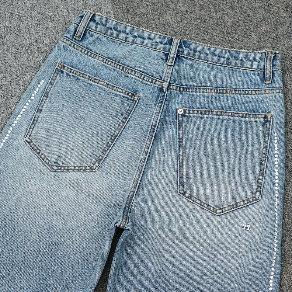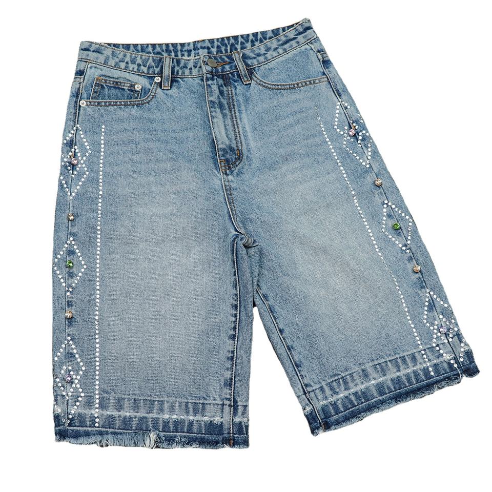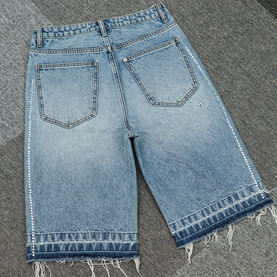กางเกงยีนส์ขาสั้นทรงหลวมเอวกลางสำหรับผู้ชาย แต่งลายปัก มีเชือกผูก ปิดด้วยผ้าแบบเรียบ ลายเรียบง่าย สไตล์สตรีทแวร์ ผ้าฝ้าย ใส่สบาย แห้งเร็ว