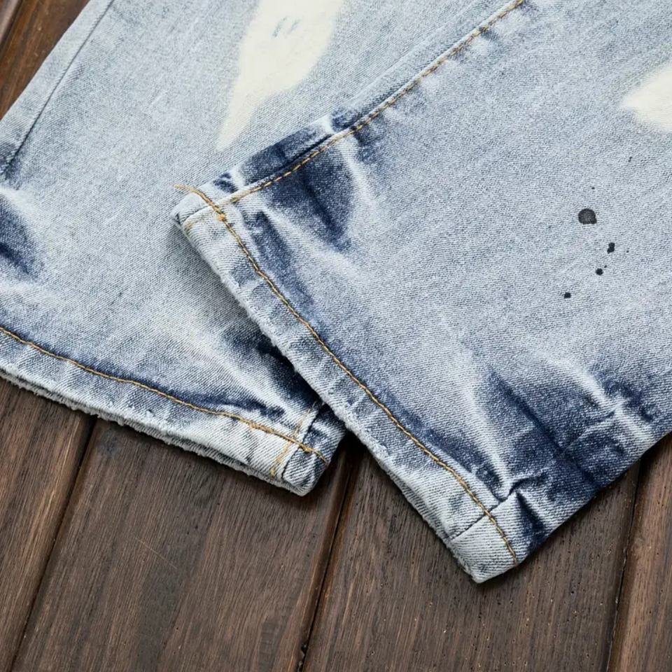 Custom Men's Mid Waist Blue Denim Jeans Casual Straight Style Ripped Holey Washed Techniques Street Fashion for Autumn Season