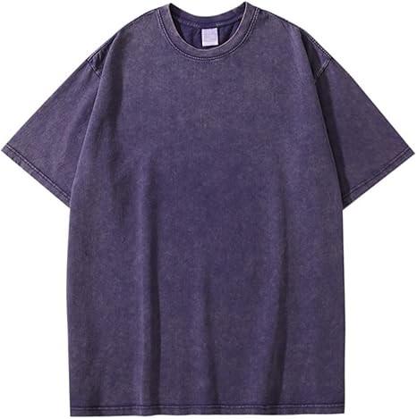 เสื้อยืดคอกลมสำหรับผู้ชายผ้าคอตตอนสี100% ซีดจางระบายอากาศได้ดีขนาดใหญ่โอเวอร์ไซส์
