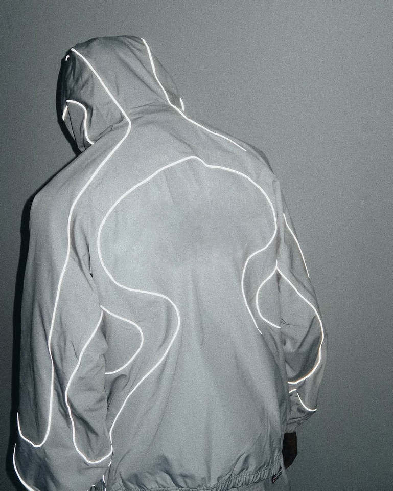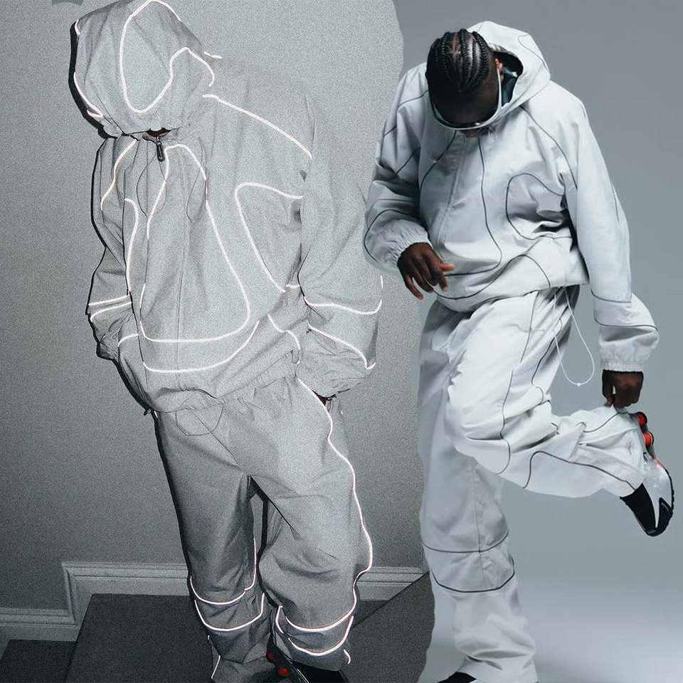 ชุดแจ็คเก็ตกันลมสะท้อนแสงและกางเกงวอร์มสำหรับผู้ชาย ทำจากโพลีเอสเตอร์และไนลอน กันน้ำ เหมาะสำหรับเล่นกีฬากลางแจ้ง