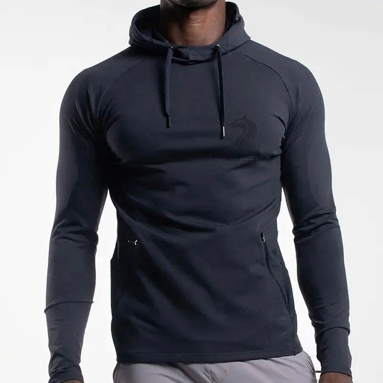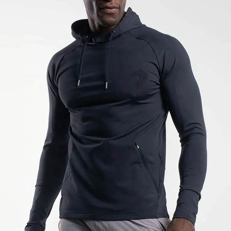 เสื้อสวมหัวมีฮู้ดผ้าฟลีซสำหรับผู้ชายโอเวอร์ไซส์แบบแห้งเร็วทรงผอมสำหรับยิมฟิตเนสฤดูหนาว